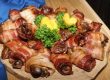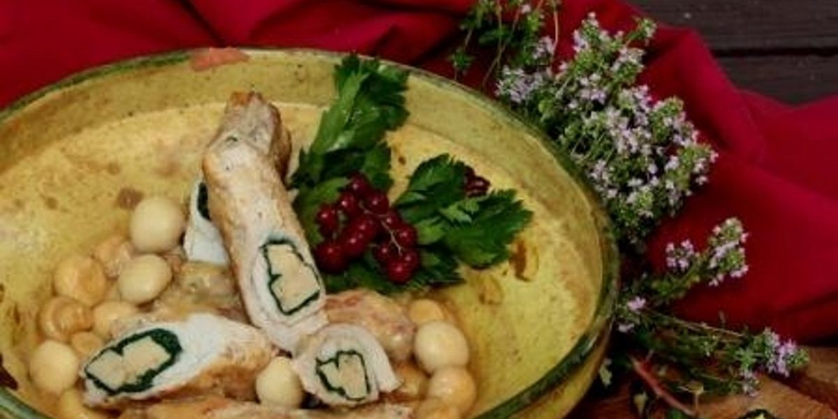 Cut the meat into steaks, and seasoned it. Cover them with leafs of nettle that have been previously boiled in salted water. In the middle put cooked white kidneys sliced on sticks. So stuffed steaks bend into rolls, secure with sticks, roll into flour and fry in fat from all sides. Pour water or broth, simmer until meat is soft. Add mushrooms, season if necessary and at the end add the wine.